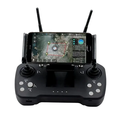 The Skydroid T12 remote offers integrated video, data, and flight control with a dual-antenna system and FHSS technology, enabling reliable communication and up to 30 km transmission range for advanced drone operations.