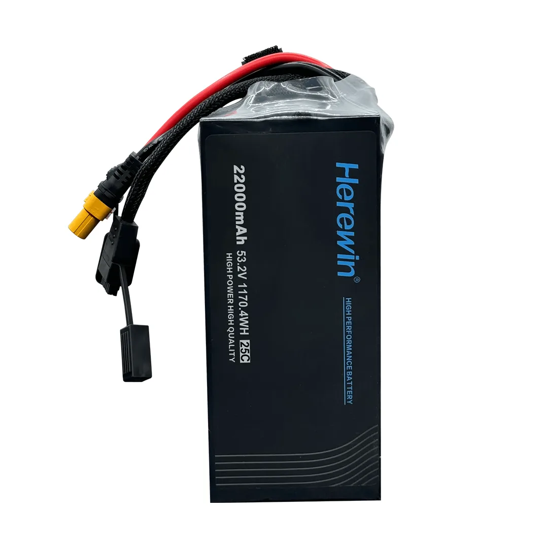 The Herewin 22,000mAh 6S LiPo battery delivers high capacity and stable power with a 25C discharge rate, ideal for long-duration drone flights and heavy-duty applications. Its durable build and fast charge support ensure reliable performance for professional UAV operations.